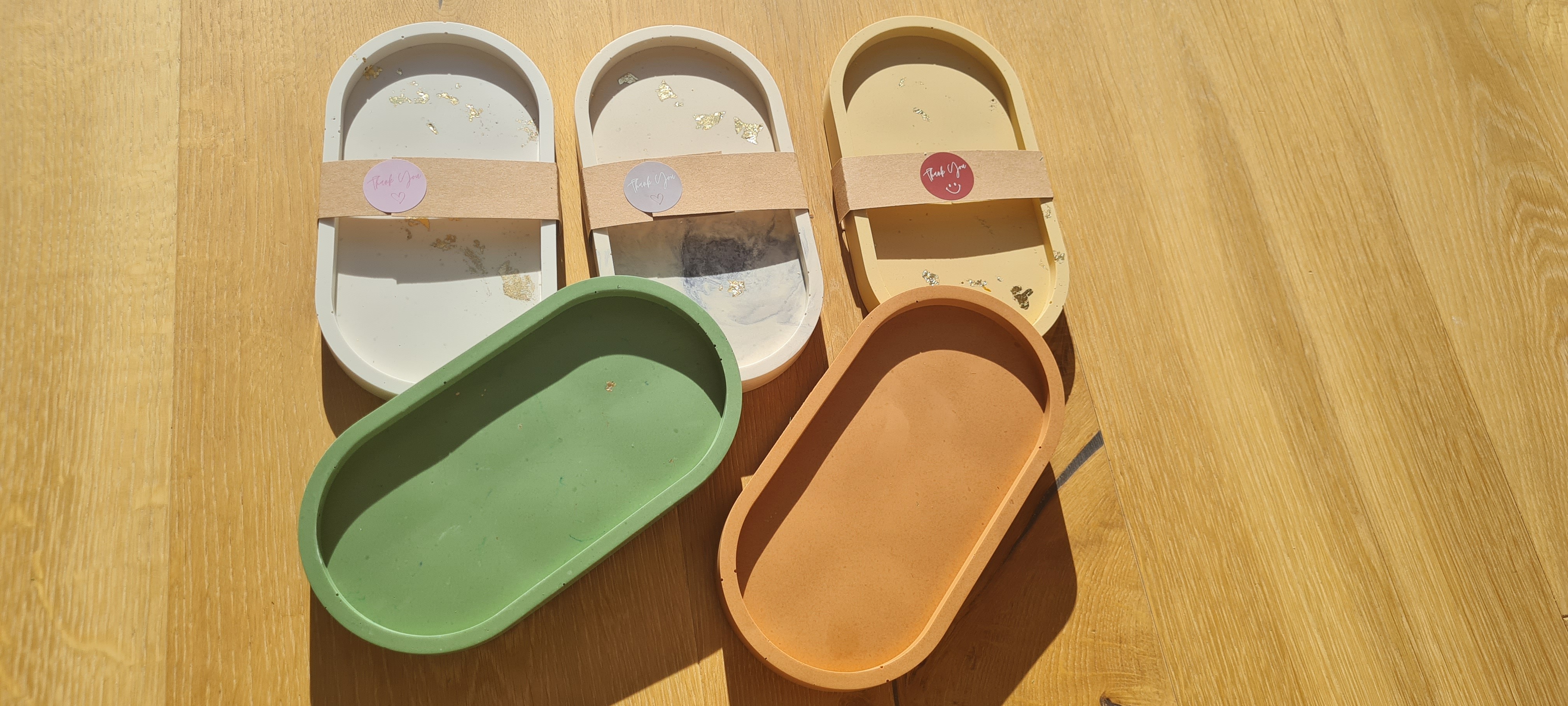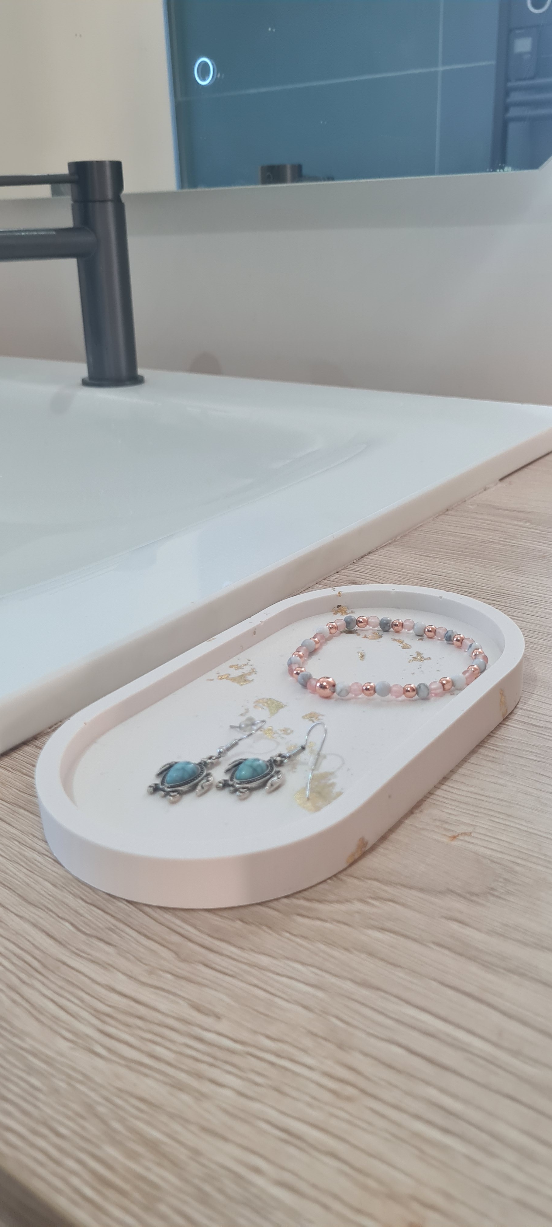 Plateau en jesmonite résistant à l'eau et aux taches. Idéal pour poser vos bijoux, vos clés ou tout autre accessoire.